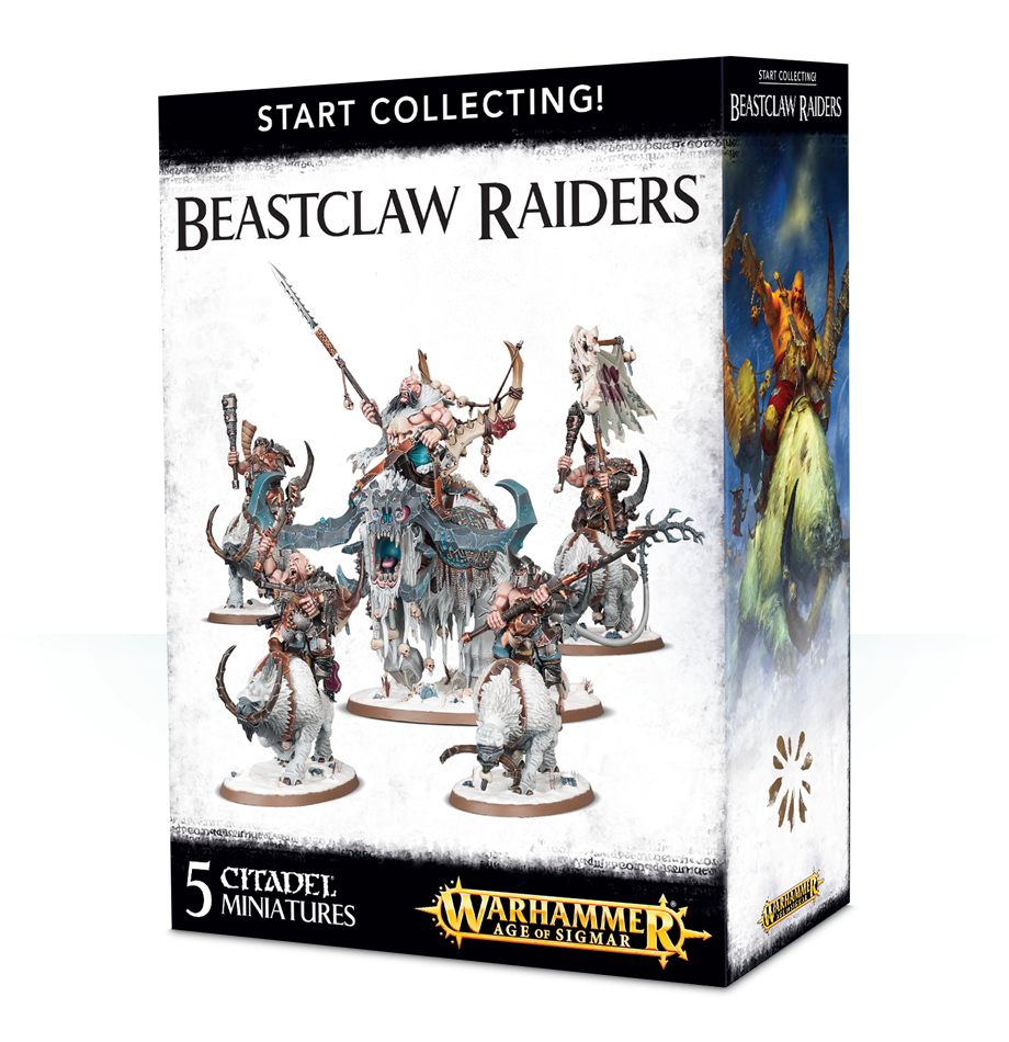 This is a great-value box set that gives you an immediate collection of fantastic Beastclaw Raiders miniatures, which you can assemble and use right away in games of Warhammer Age of Sigmar! You’ll receive: